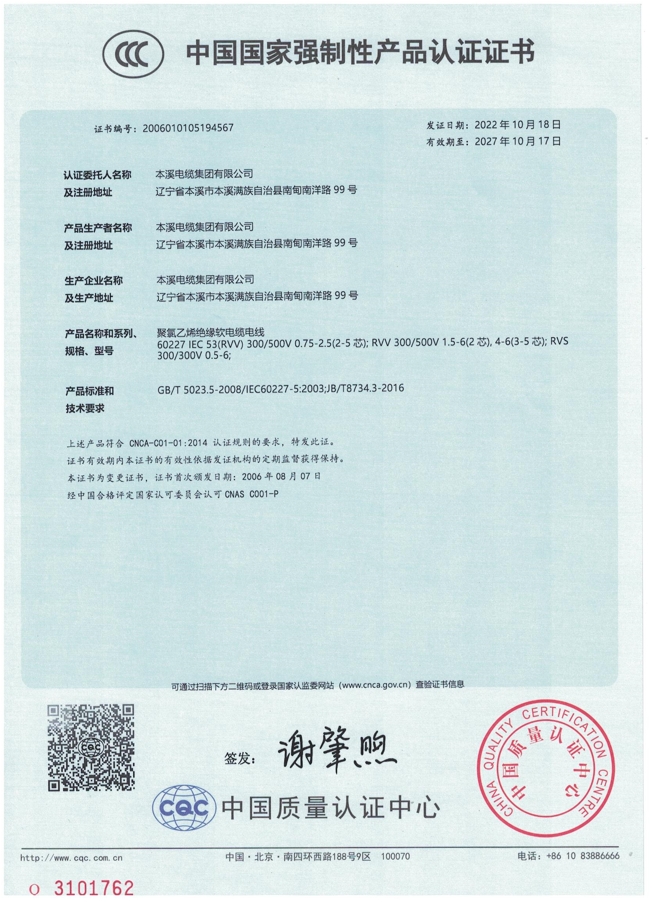 中國國家強制性產(chǎn)品認(rèn)證證書